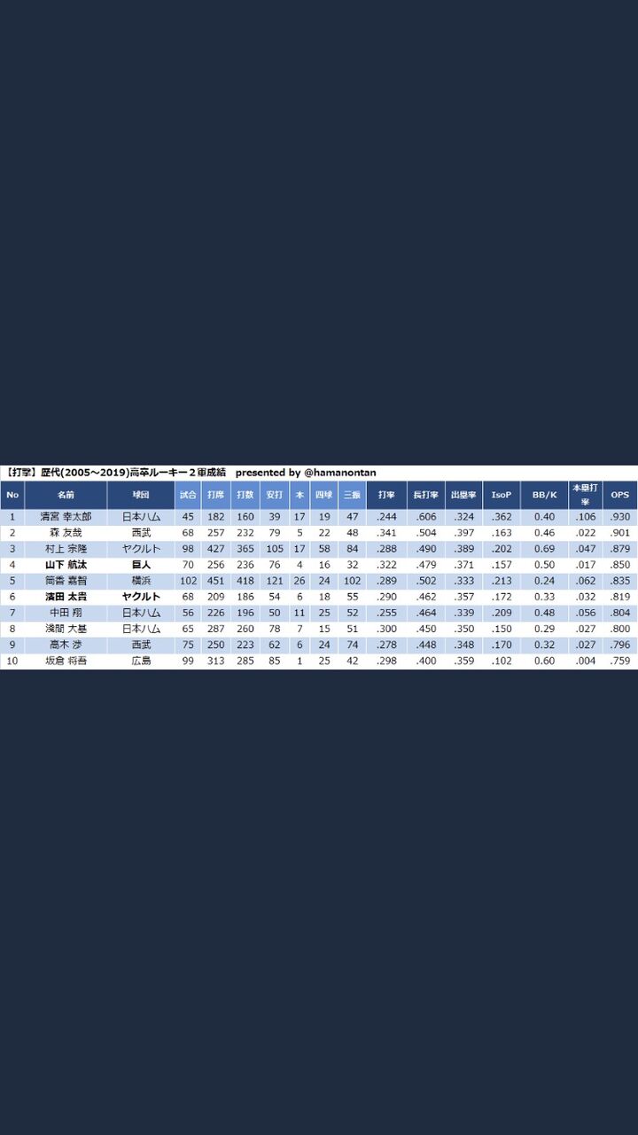 6位濱田(ヤク) .290 6本 OPS.819 三振55