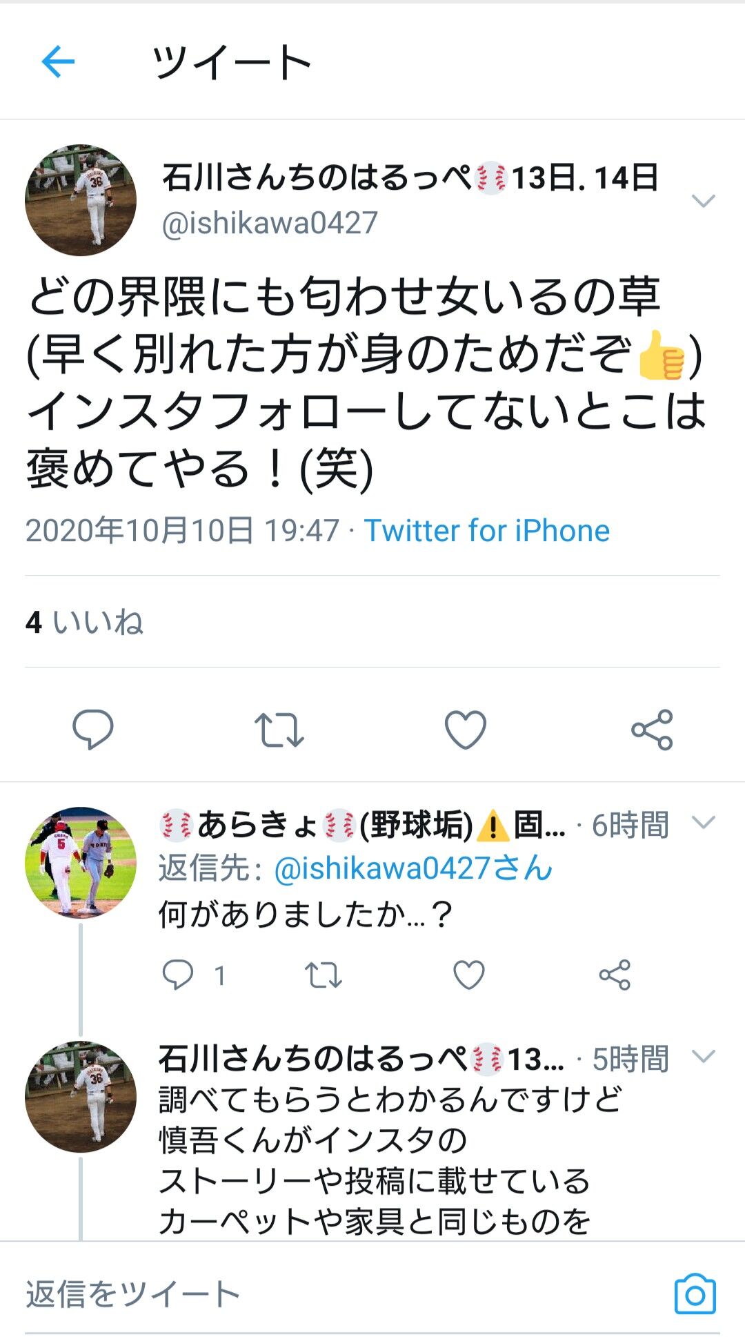 【【速報】巨人の『石川慎吾』内野手、試合中にも関わらず「巨人公式Twitter」のフォローを外すWWlWWl】の続きを読む引用元: ・https://swallow.5ch.net/test/read.cgi/livejupiter/1626878459/